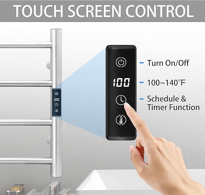 - [TOUGH SCREEN CONTROL]: Manually to turn on/off anytime. Countdown Timer function from 1 hour to 8 hours. Temperature control from 100Β°F to 140Β°F.