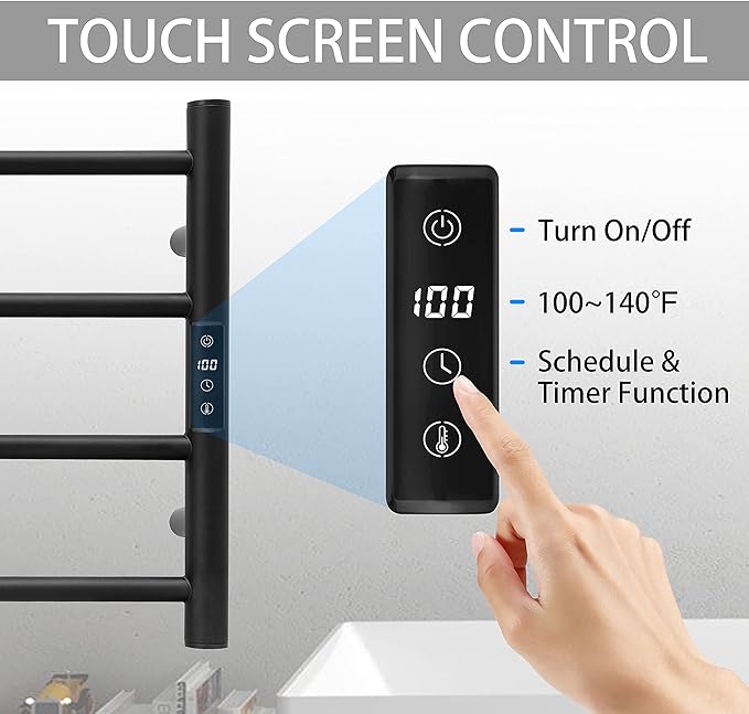 - [TOUGH SCREEN CONTROL]: Manually to turn on/off anytime. Countdown Timer function from 1 hour to 8 hours. Temperature control from 100Β°F to 140Β°F.