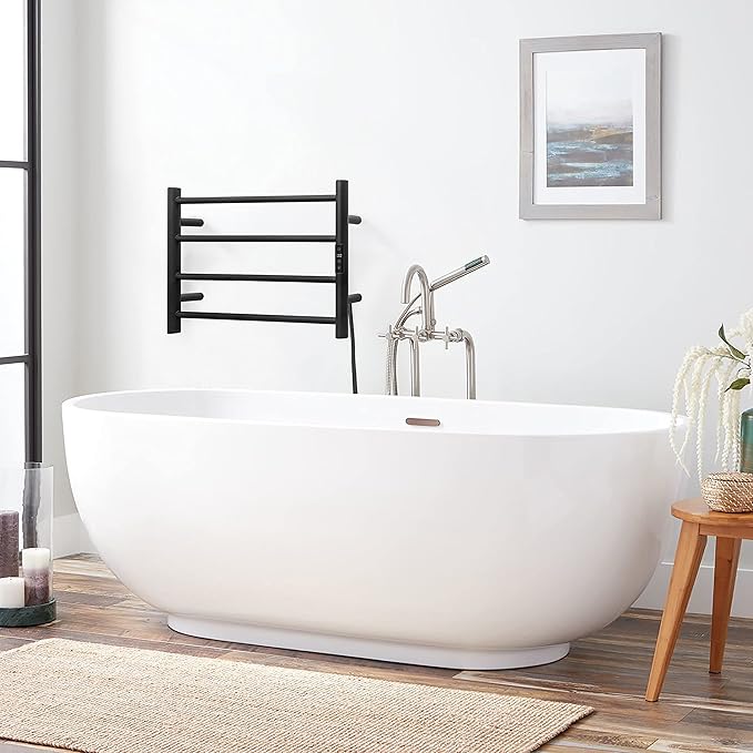 - [PREMIUM QUALITY WITH ELEGANT LOOK]: The bath towel warmer is made of durable 304 stainless steel, easy to clean and durable use. IP56 Waterproof standard and wall-mounted design maximizes your floor space.