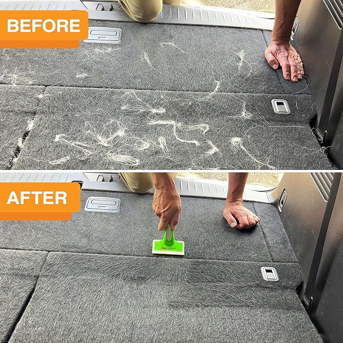 - WORKS ON MULTIPLE SURFACES & EASY TO USE - The FurDozer combines a patented revolutionary design with hi-tech materials to work on multiple surfaces, including Carpets, Cars, Couches, and more! It is also super easy to use. Simply hold the tool flat and apply pressure to dig our embedded hair, collect hair into a pile, and toss! Unlike lint rollers that have a lot of paper waste, the FurDozer is reusable, eco-friendly, and easy to clean.