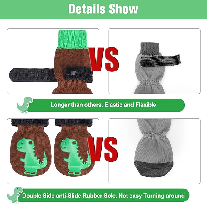 - Non-Skid: For hardwood floor, if your baby has problems who was splaying and keeps slipping on your wooden floors with back legs, we suggest you would buy these the soles which have anti-slip adhesive, which can provide extra traction. Besides, wearing a non skid sock prevents dogs from licking and irritating the wound further aid in healing foot wounds.β οΈPlease note we have design patent to protective this exclusive design !