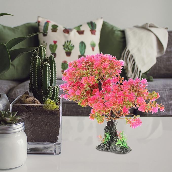POPETPOP Artificial Aquarium Plant Plastic Water Plant Tree Fish Tank Bonsai Ornament Fish Tank Hideout Sushi Plate Decor for Aquarium Terrarium Landscape Pink