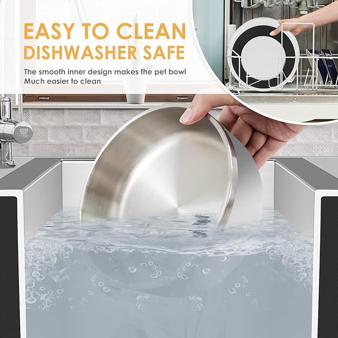 - EASY TO CLEAN-The stainless steel dog water bowl uses polishing technology to create a smooth surface. These crafts can help you easy to clean and wipe. These metal bowls are perfect for dogs, cats, rabbits or other animals.