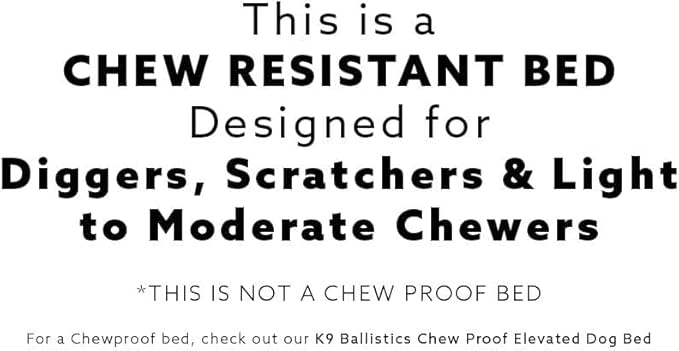 - Durable Ripstop Ballistic Cover: The heavy-duty cover withstands scratching, digging, and occasional mouthing or light chewing. Great for dogs that like to get a little rough with their beds! Please note that this is not a chew proof bed and it is not recommended for dogs that chew heavily or constantly on their bedding.