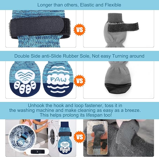 - Anti-slip: With a three-sided non-slip rubber sole, your pet's paws will have a good grip on the floor. For hardwood floors, if your baby's paws have a problem slipping on wood floors, we recommend you buy these socks with a anti-slip adhesive. Use non-slip socks to help heal foot wounds and prevent the dog from licking and further irritating the wound. ??Please note that we have a design patent to protective this exclusive design!
