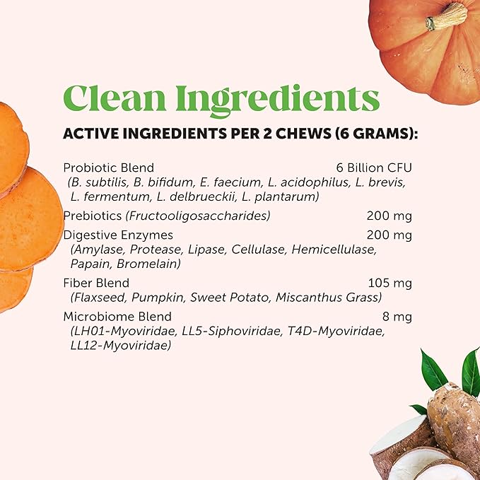 - Provide maximum support for their gut, immune, and bowel health: These easy-to-give chews contain key functional ingredients to help ease tummy troubles and grow healthy gut microbiomes, so your dog can feel their best. Our unique blend of natural soluble and insoluble fibers work together with other natural ingredients to improve stool quality, helping them feel more comfortable when itβs time to go. Plus, your dog will absolutely love the delicious natural chicken flavor!