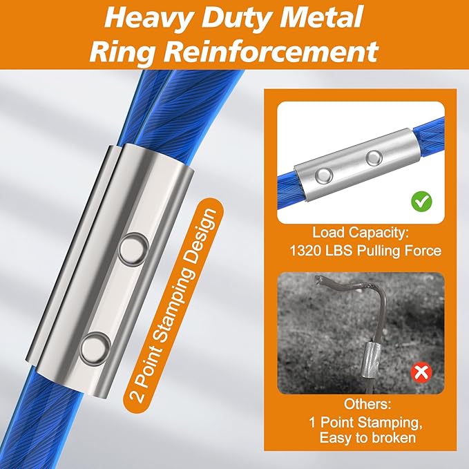 - Ultra Strong Dog Tie Out - The inner core of our dog wire leash is consits 7*19 stainless steel wire which is the most tightly twisted and most sturdy structure of dog cable. The outer skin is chew proof vinyl coating, and the crimps of the two end has been double hardened. Our dog tie out cable have been rigorously tested, it's perfect for dogs up to 500LBS.