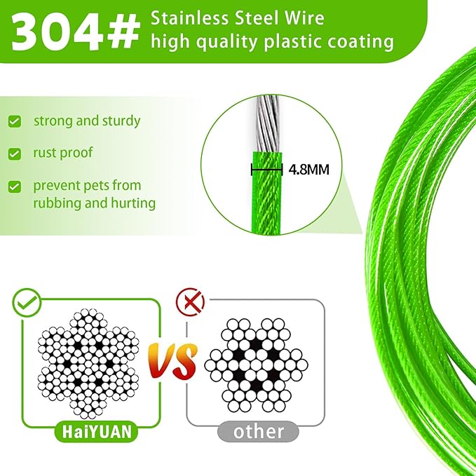 - DURABLE MATERIAL:The steel cable is very strong, wrapped in a soft PVC protection tube, durable, rust-proof, high-strength anti-bite, not easy to be torn by the dog, and can be used for a longer period of time.