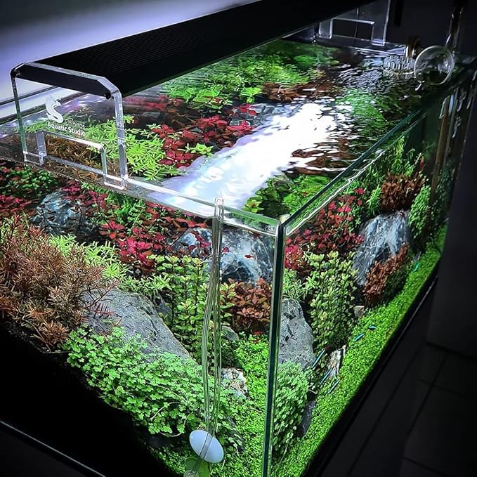 A garden of water—substrates, plants, and glass that set rhythm and depth.