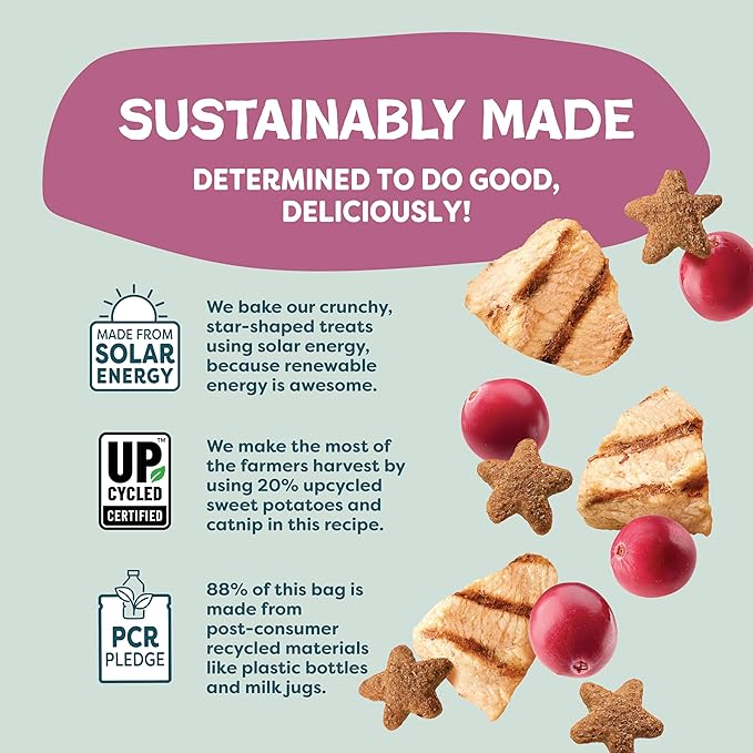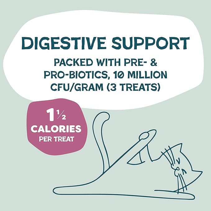 - Cat Treats That Support Digestive Health: Whether you have a celeb or average kitty they will love our blend of savory chicken with a hint of tart cranberries. These crunchy, star-shaped, bite-sized treats are packed with both pre & probiotics, which help support digestion! Includes three 2.5 oz bags.