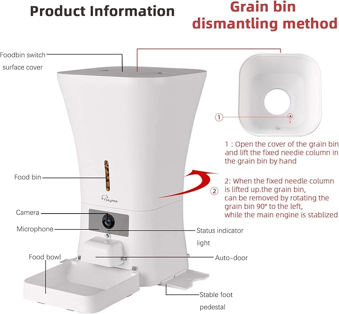 SKYMEE 12L 5G WiFi Aautomatic Dog Feeder Large Breed & Automatic cat feeders 1080P Full HD Pet Camera Treat Dispenser Food Dispenser