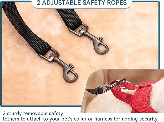 - [Safety First] The dog car seat for medium dogs is designed with an adjustable lanyard, a safety clip, and 2 patent buckles to secure the seat and keep it from sliding in the car. And come with 2 upgraded bigger safety ropes to avoid pets jumping out, It lessens the likelihood that you will become distracted while driving.