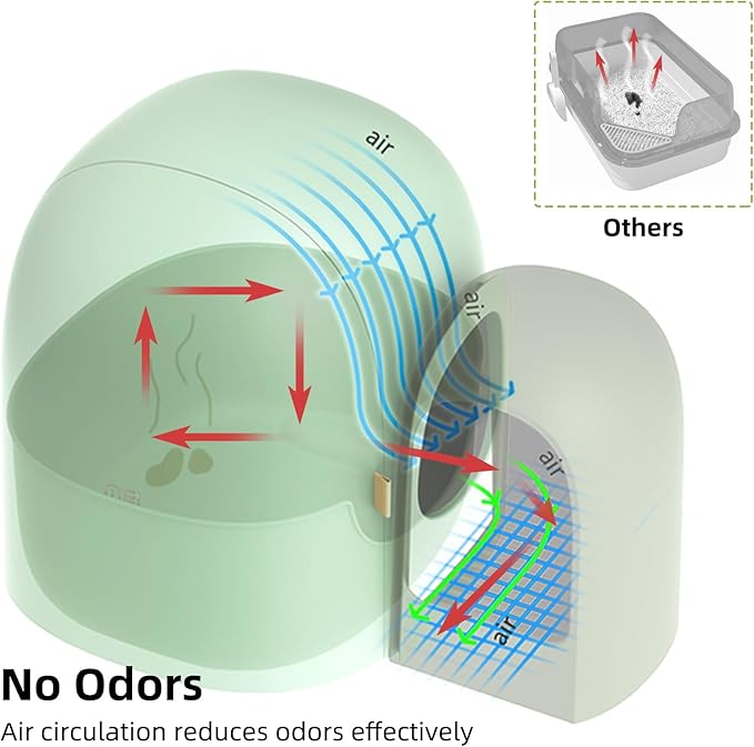 - Closed Design: Closed cat litter box with lid design. After the cat excretes, it is firmly locked in the litter box, effectively avoiding the odor and dust, so that the environment around the cat litter box is always clean and fresh. Even in corners with poor ventilation, it reduces the trouble of odor and creates a comfortable and pleasant living environment for you