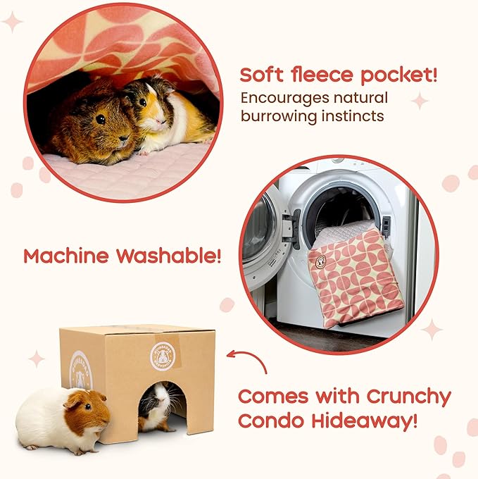 - Encourages Burrowing & Easy Cleaning: With built-in pockets for natural nesting, this guinea pig liner supports instinctive behaviors while maintaining a soft, dry surface. Machine washable for quick cleanup and a healthier guinea pig home.