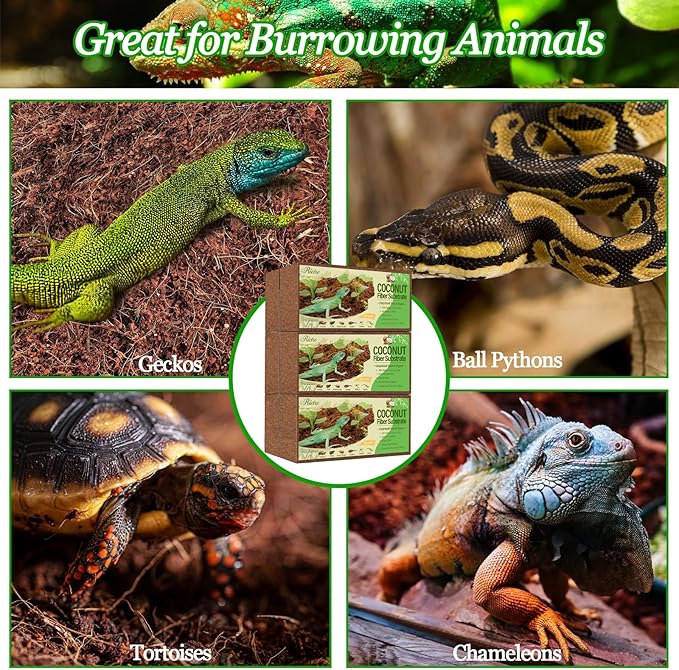 - Universal Aquarium Substrate: Pure natural terrarium bedding is very soft and comfortable with good breathability, even your pet can breathe freely in the coconut soil. Suitable for frogs, hermit crabs, snakes, turtles, frogs, lizards, chameleons, geckos, salamander,snails and orb pythons, and spiders and other burrowing animals, you can use it to keep your pets with confidence