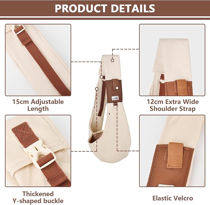 - 🐶 COMFORT & SAFETY:①Dog carrier sling has adjustable shoulder strap for various heights and weights;②Wide shoulder area for even weight distribution and reduced pressure;③Metal buckle with adjustable ventilation;④Pure cotton fabric for increased durability;⑤Breathable and comfortable fur lining;⑥Anti-escape buckle for safe travels.