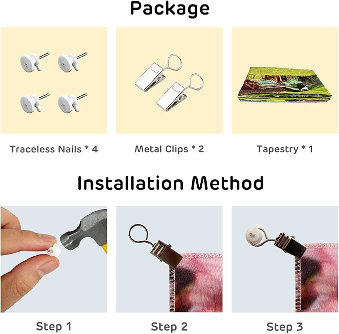 - Use & Care:This tapestry is lightweight and can be easily secured with thumbtacks. Hand and machine washable, and for shipping creases can be removed with a dryer or garment steamer.