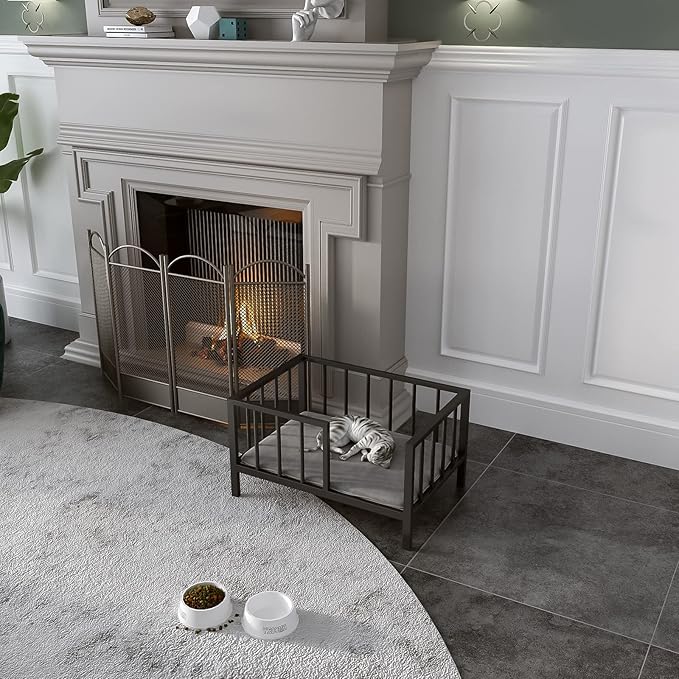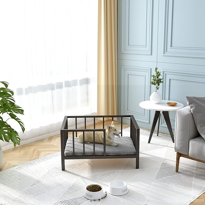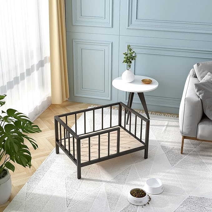 - SOLID STRUCTURE & CHEW RESISTANT - The dog bed frame is made of thick metal pipe, plus solid wood bed board so that the whole bed is extremely strong. The metal pipe also ensures the dog bed will not be damaged by any pet's biting. In addition to the mat, we believe this pet bed frame will accompany your pet for a lifetime.