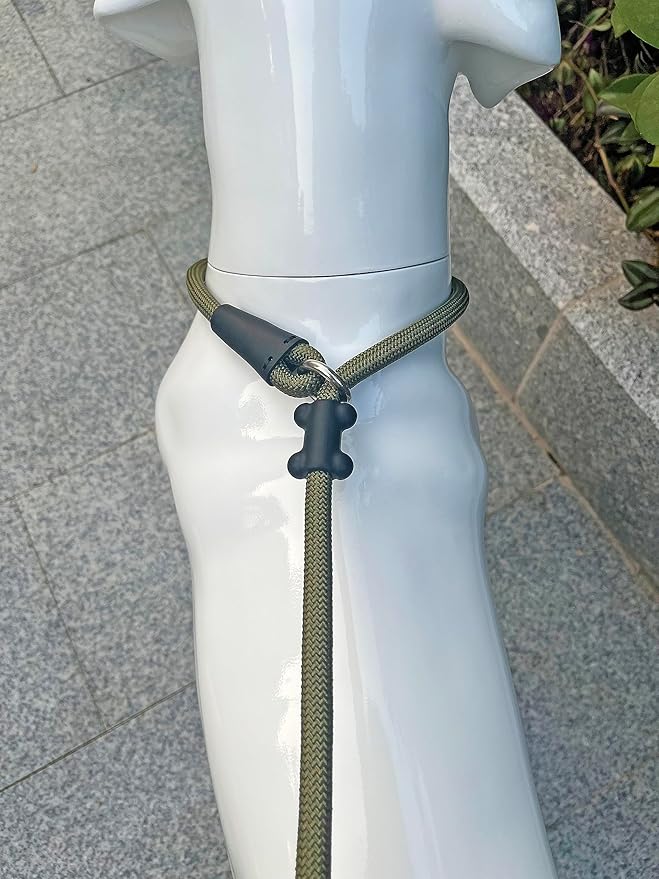 Slip Lead Dog Leash,Strong Nylon Rope Leash and Padded Handle,No Pull Outdoor Walking Training Lead for Small Medium Large Dogs(Army Green, 1/2"×6ft)