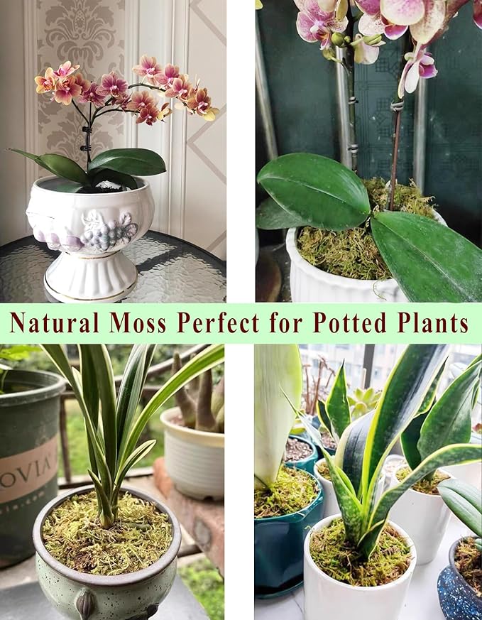 - Add natural beauty to your indoor or outdoor potted plants with our forest moss.