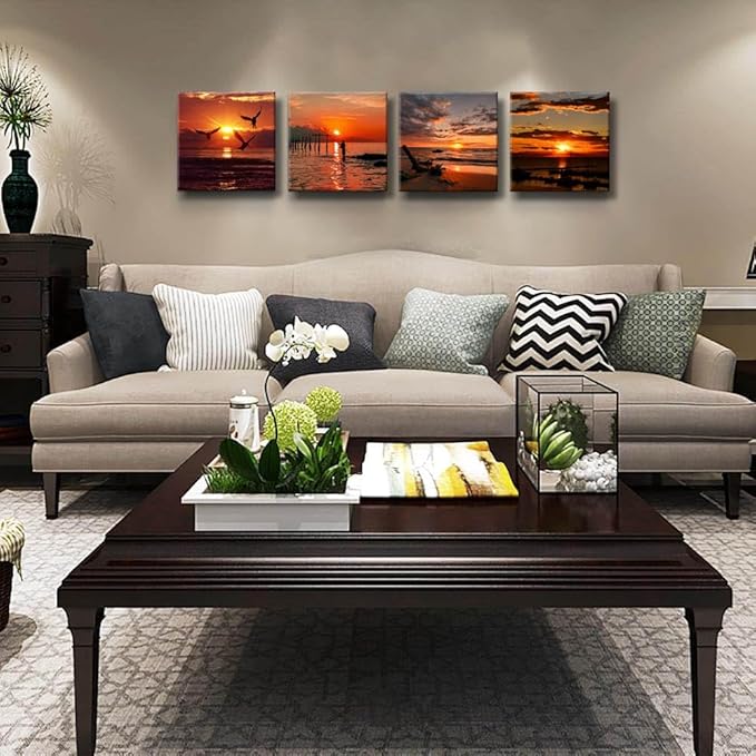 - 🌊Canvas Print Size: 12 x 12 inchesx 4 panel ( 30 x 30 cm x 4 pcs ) Framed picture posters.