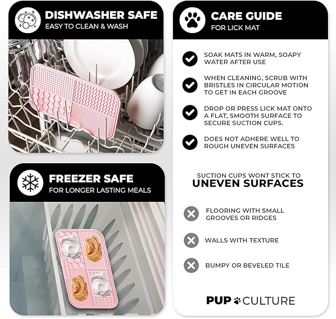 - SLOWS DOWN EATING HABITS. Does your pup eat every meal like it’s his last? Now you can stop your dog from biting off more than he can chew with Pup Culture’s Dog Licking Mat. Its unique, suctioning design outperforms the typical dog bowl with heavy-duty material that entertains your pup for hours on end, all while providing the nourishment he needs.