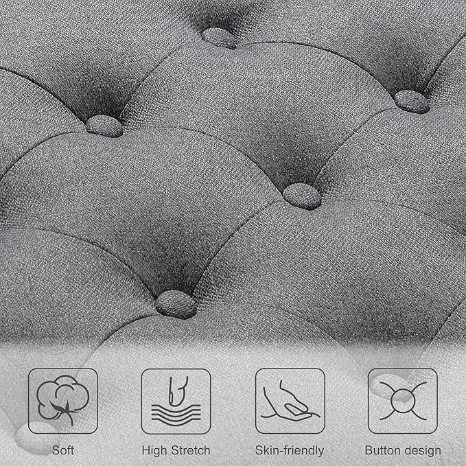 - COMFORTABLE AND SAFE DESIGN: This storage ottoman is made of linen fabric and filled with high-density foam on the top, which is comfortable to sit, soft and lightweight and not easy to deform. Safety hinges on the upholstered storage bench lid ensure smooth, safe operation and easy access to items.