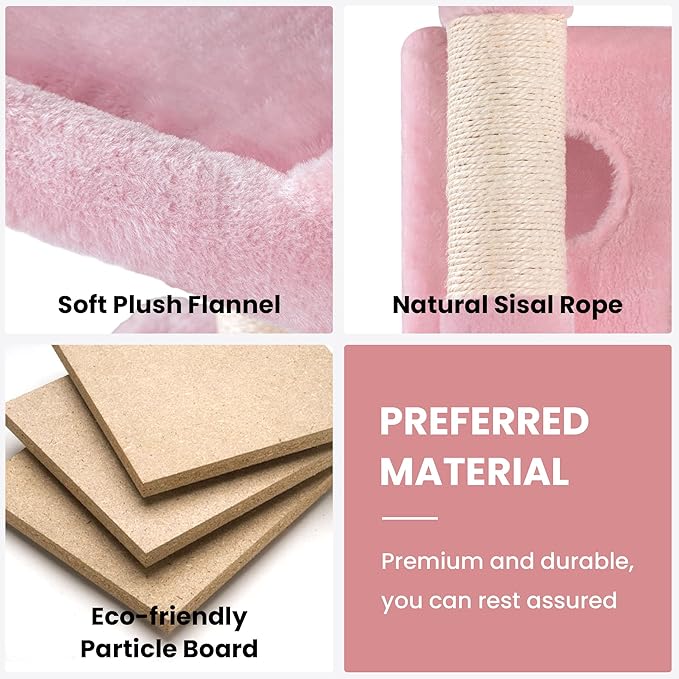 - Solid and Stable: The cat tree is made of high-quality particle board with a plush covering, and the strengthened base is strong enough to support 33 lb