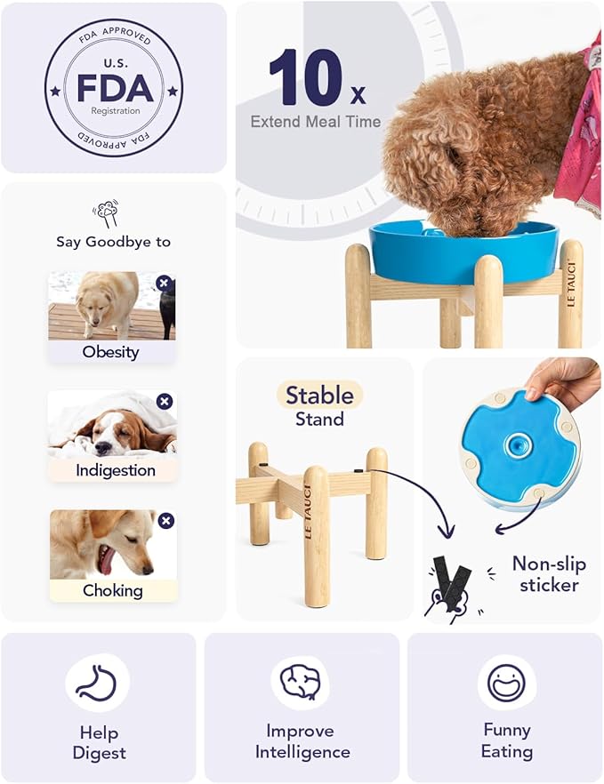 - Slow Down Eating, Bring Dog A Healthy Diet: Fast-eating dogs experience bloat, regurgitation, and obesity easily. Our slow feeder dog bowl design with the ridges and maze pattern helps your dog to eat slower than 10 times. Your dog could change his overeating behavior through a challenge and fun mealtime