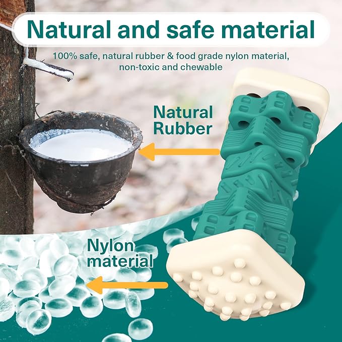 - Dog Chew Toys For Aggressive Chewers: This dog toys is made of natural rubber and tough nylon. They can help grind their teeth, relieve anxiety, train, and reduce damage to furniture or shoes, pet boredom and barking