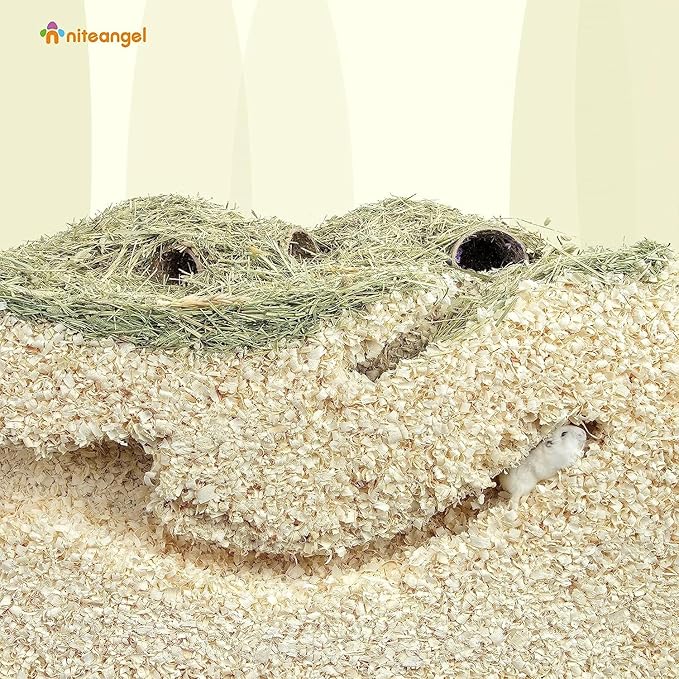 - [Soft Texture & More Comfortable] Niteangel tiny pet aspen bedding is made from natural Aspen wood and safe for small pets. The soft fluffy texture allows your critters to play freely on the aspen shavings bedding. The small pet bedding is not only good at absorbing the annoying smell of the cage, but also gives the hamster a natural and comfortable habitat.