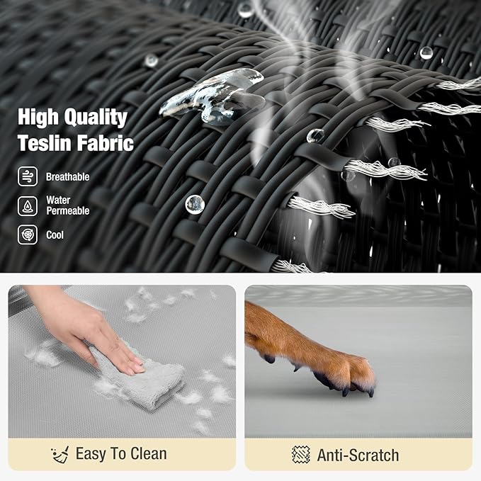 - Security Structure: Composed of robust Powder-Coated Steel tube, anti-scratch Teslin mesh, and the non-slip rubber feet can avoid slipping and scratches on the floor when dogs jump on or off. Great stability and high load-bearing ensure it’s a safe place for you dog to be calm and relax