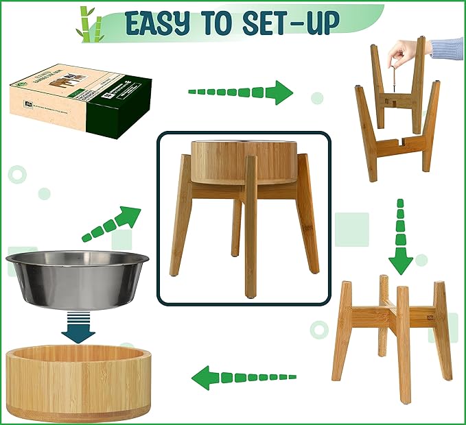 - Hygienic for Both Wet and Dry Dog Food β Crafted from kitchen-grade natural bamboo and stainless steel materials, this dog food feeder is ideal for your petβs well-being. The steel bowl ensures hassle-free washing and drying.