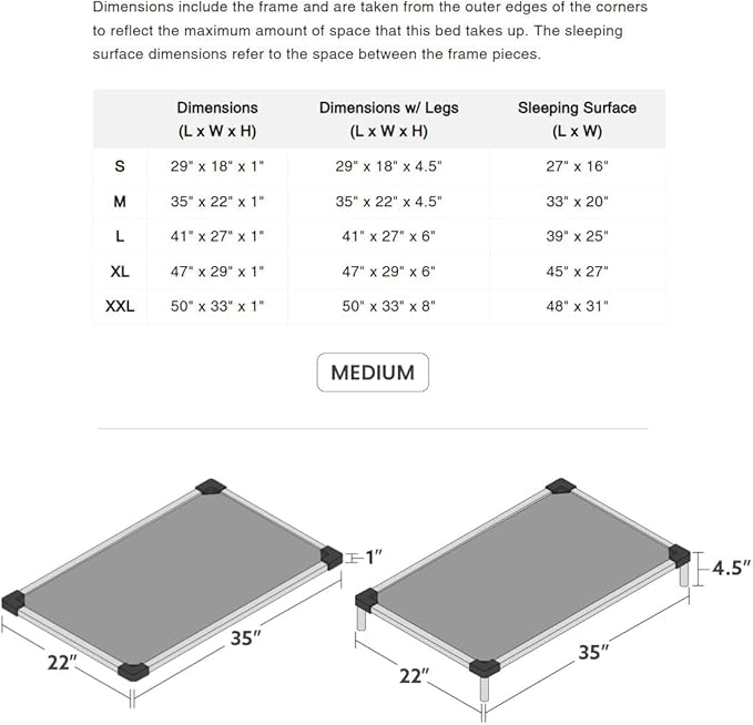 - Elevated and Padded for Extra Comfort: The bed's padded sling is filled to a 1.5β thickness with recycled polyester fiberfill for extra softness and insulation. When elevated with the included legs, it conforms to your dogβs body to eliminate pressure points and provide orthopedic-style support.