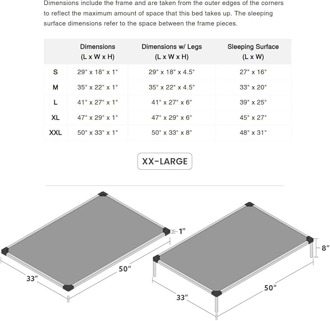 - Elevated and Padded for Extra Comfort: The bed's padded sling is filled to a 1.5β thickness with recycled polyester fiberfill for extra softness and insulation. When elevated with the included legs, it conforms to your dogβs body to eliminate pressure points and provide orthopedic-style support.
