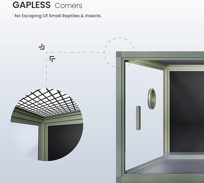 - 【Easy Maintenance】Front opening reptile terrarium with door handles included for easy cleaning & feeding. No more suction cup problems or unsightly fingerprints all over. The substrate barrier keeps the substrate in place. Our tempered glass doors are durable enough to withstand scratching.
