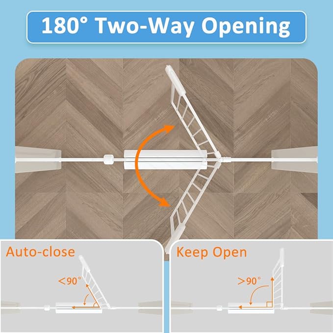 - 180Β° automatic opening and closing - The innovative 180Β° automatic opening and closing feature allows for effortless access. Simply push the dog gates for doorways to open, and it will gently close behind you, providing convenience for busy parents while ensuring the safety of your child