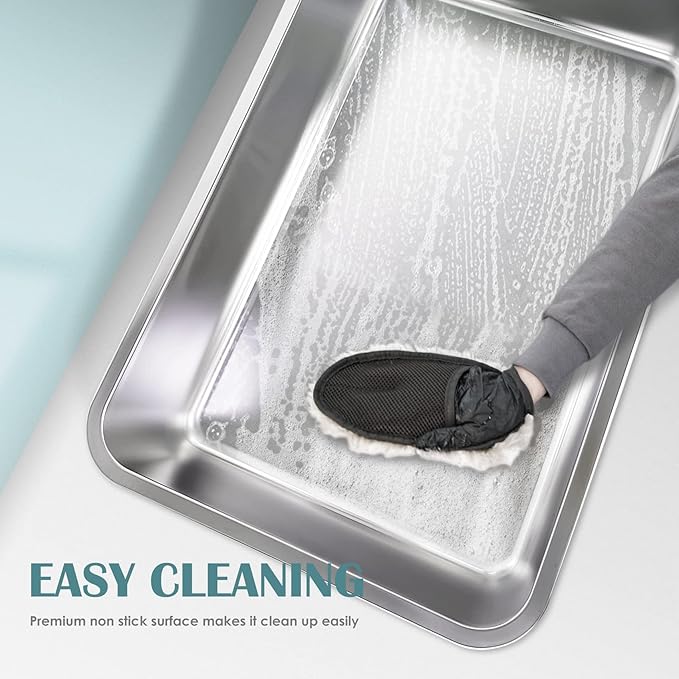 IKITCHEN Stainless Steel Cat Litter Box, Large Metal Litter Box for Cats, Never Absorbs Odors,Stain Free, Rustproof, Non Stick Smooth Surface, Anti-Slip Rubber Bottom, 19.5" L x 13.5" W x 4" H