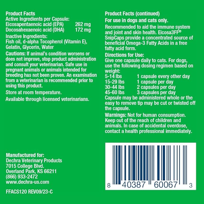 SnipCaps Omega 3 Free Fatty Acid Capsules for Dogs and Cats - Small, 120 ct