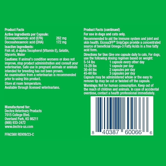 SnipCaps Omega 3 Free Fatty Acid Capsules for Dogs and Cats - Small, 60 ct