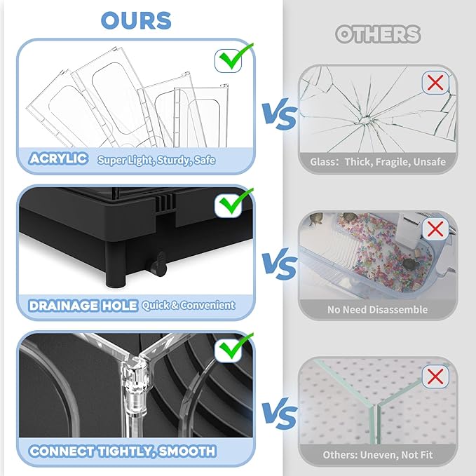 - 【FULL ACCESSORIES & EASY TO INSTALL】Our package includes all accessories you need to set up a tank kit. 4PCS acrylic panels, 1PC tank bottom, 1PC Filter+2 filter plates, 1PC PVC pipe, 1PC sponge, 2PCS decorative plants, 1PC cleaning brush, 1BAG rocks(240g), 1PC manual.