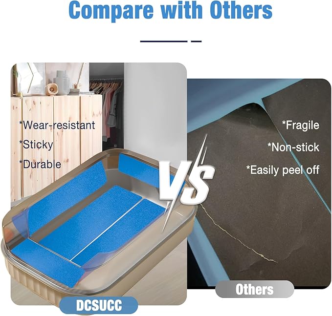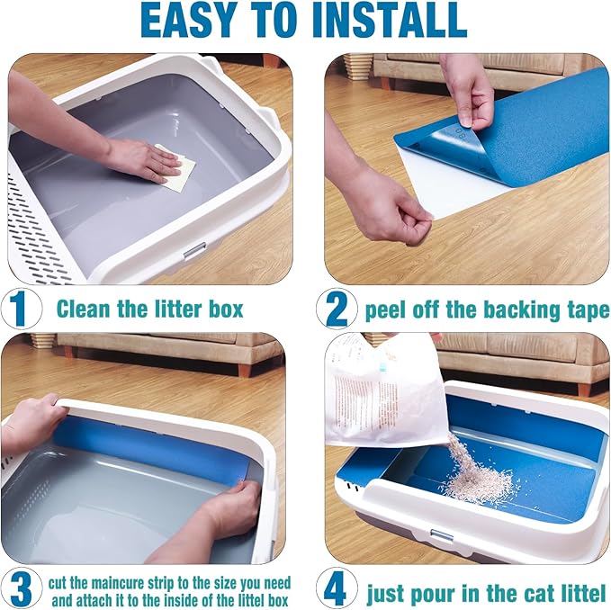 - 【Safe & Waterproof Cat Nail File】: Our cat scratcher that files nails is made of PET material, glue, and paper base. Each PET cat nail file completely avoids tearing from the cat's claws, is wear-resistant, non-toxic, odorless, and safe. The permeable adhesive glue is durable, viscous, waterproof, and extends its service life when cleaning your cat litter box. Recommended for use only in the litter box.