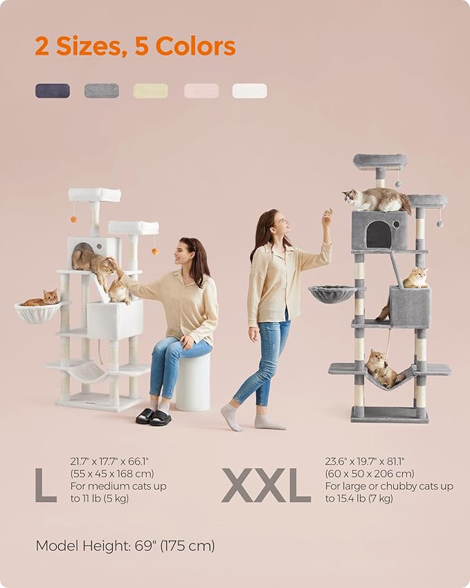 - [Easy to Assemble] With a simple structure, step-by-step instructions, and labeled parts, assembling this tall cat tree is as easy as building blocks