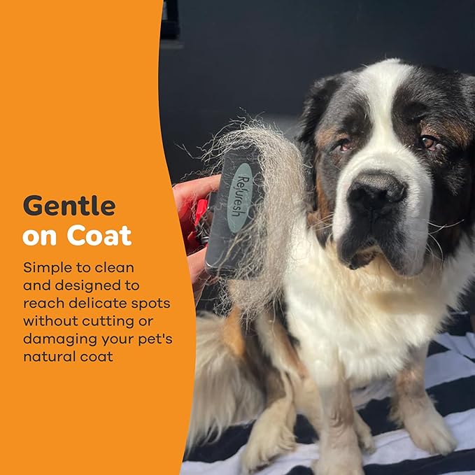- Comfortable & gentle on pet skin : The Refuresh deshedding brush has an individual teeth like structure instead of a blades. This makes sure that there is no pulling or tugging at your dogs skin while getting rid of the shedding fur.