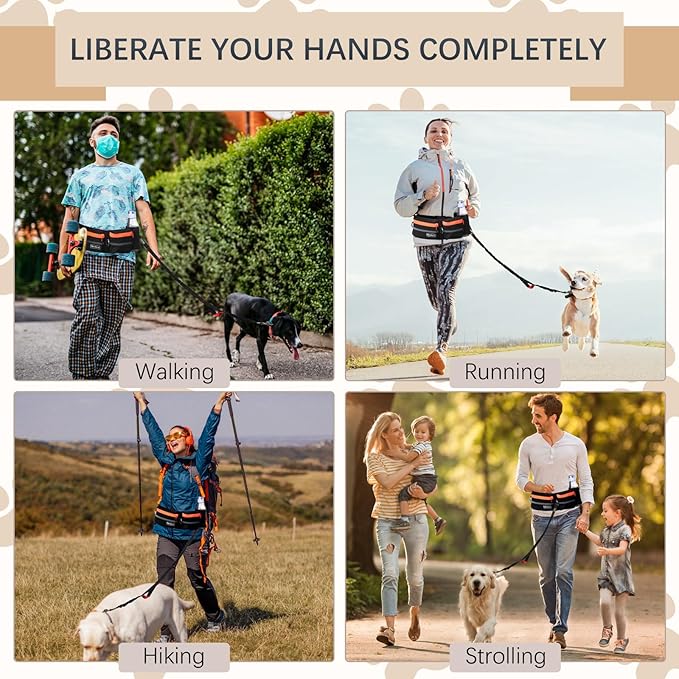 - Versatile and Multi-functional: Whether you're training, hiking, jogging, or simply going for a walk, our hands-free dog leash is an excellent tool for obedience training or teaching your dog new tricks. It serves as a reliable double handle bungee leash, allowing you to have control over your dog's movements and reward their good behavior.