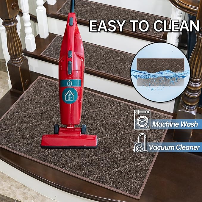 - NON-SLIP STAIR RUG: Multi-purpose Stair mats to use the TPE Non-Skid backing on dry floor, helping it to stay in place on your floor, it won't slip or scuff floors. Low profile design so doors won't get stuck.Perfect for homes with pets (dogs or cats) or kids.
