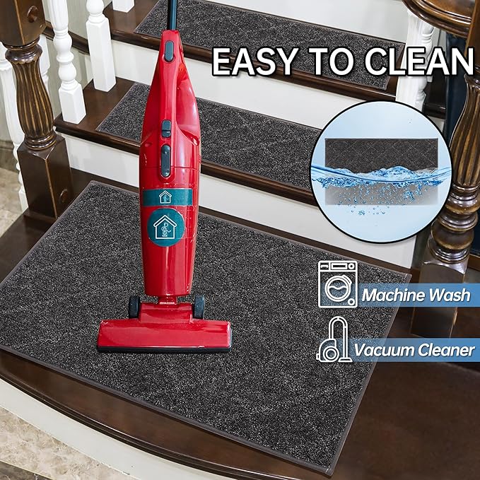- NON-SLIP STAIR RUG: Multi-purpose Stair mats to use the TPE Non-Skid backing on dry floor, helping it to stay in place on your floor, it won't slip or scuff floors. Low profile design so doors won't get stuck.Perfect for homes with pets (dogs or cats) or kids.