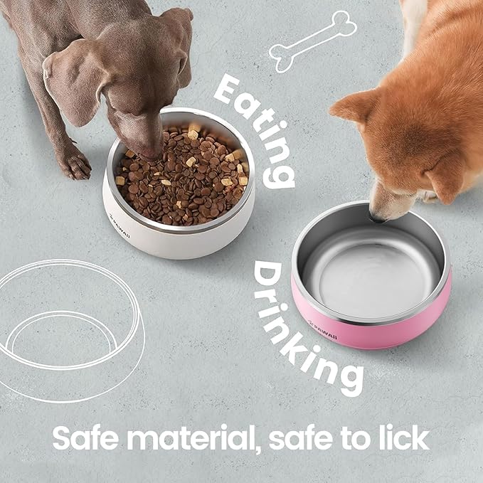 - 𝐒𝐚𝐟𝐞 𝐭𝐨 𝐮𝐬𝐞: Made from double wall 304 stainless steel, this dog bowl is crash and bite-resistant. The adoption of food-grade materials also makes it safe to use. 𝐄𝐯𝐞𝐫𝐲 𝐝𝐨𝐠 𝐛𝐨𝐰𝐥 𝐜𝐨𝐦𝐞𝐬 𝐰𝐢𝐭𝐡 𝐚 𝐈𝐃 𝐓𝐀𝐆 𝐨𝐟 𝐫𝐚𝐧𝐝𝐨𝐦 𝐜𝐨𝐥𝐨𝐫.