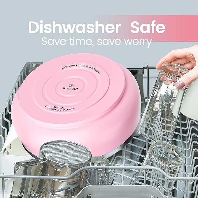 - 𝐀 𝐛𝐫𝐞𝐞𝐳𝐞 𝐭𝐨 𝐜𝐥𝐞𝐚𝐧: You can wash this dog food bowl in a dishwasher or manually. Pawaii stainless steel dog bowl repels oil, does not hide dirt, and can be cleaned by simple flushing.