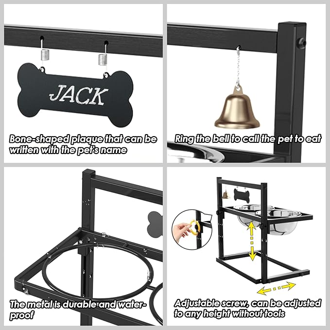 - STURDY & STABLE - The elevated dog bowls is made of high quality thickened iron frame, sturdy l-shaped iron frame enhances stability, so the dog food bowls won't collapse, move or tip over when your pet is eating or drinking